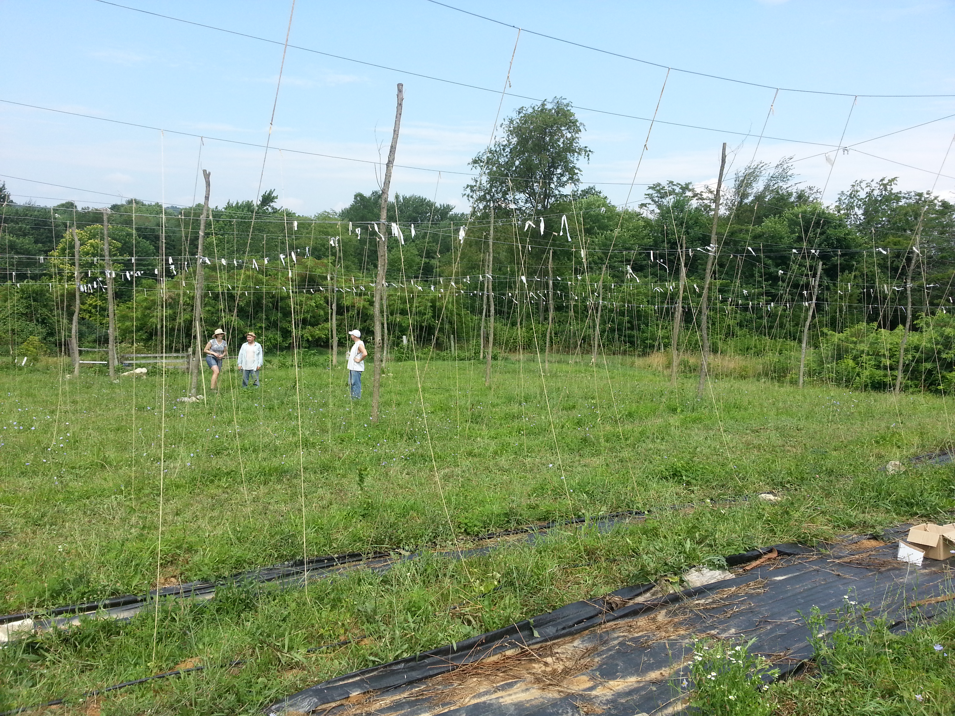 Motivated by the thought that these flowers would someday fulfill their destiny in a kettle of boiling water that would hoptimately become beer, we put in a hoptimum effort. Two hours and two rows later, our task was well hopsecuted. So much so, that Jane invited us back for the fall when it’s time to pick the hops. Who could be hopposed to that?